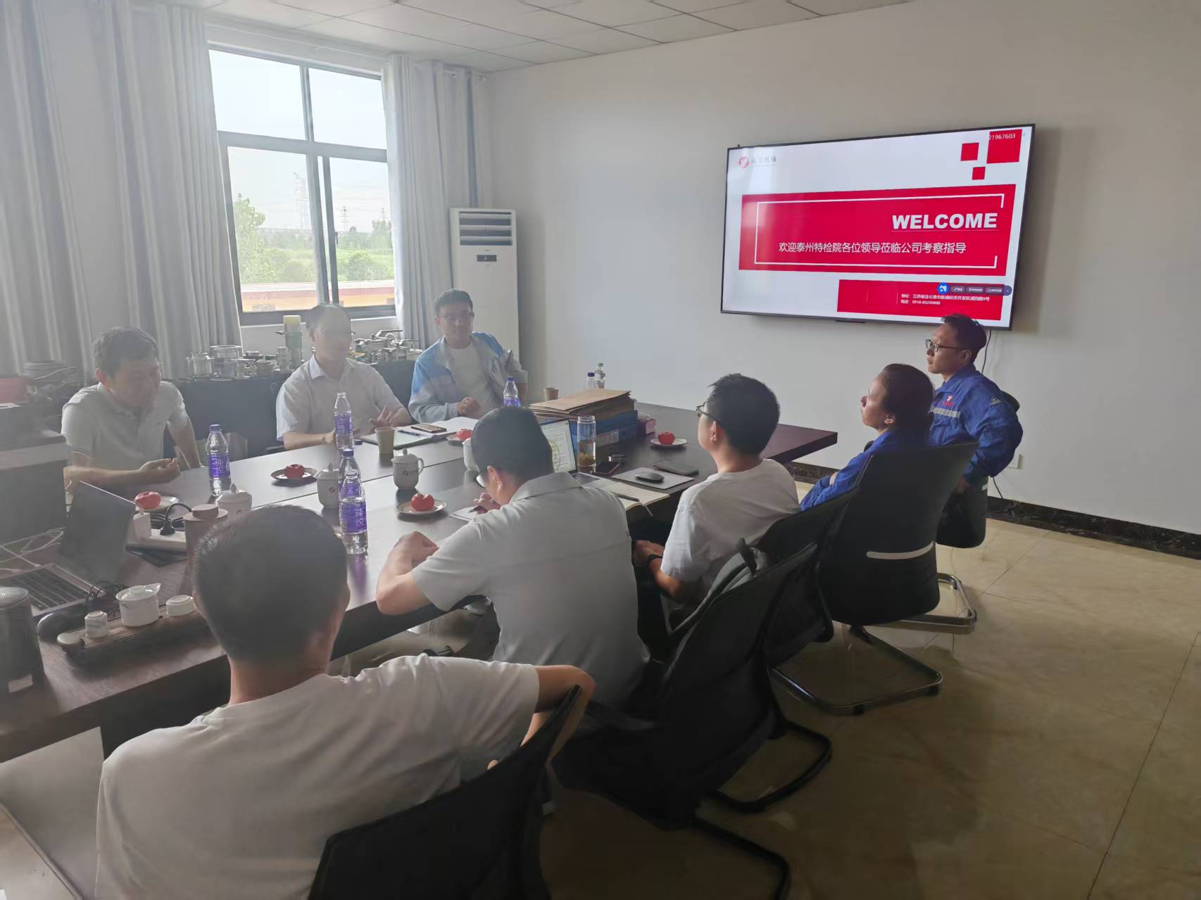 近日,泰州特檢院在連云港特檢院的陪同下蒞臨我司觀摩鶴管監(jiān)檢流程,公司總經(jīng)理許劉堂熱情接待了各位領(lǐng)導(dǎo),并向各位領(lǐng)導(dǎo)介紹了公司近年來在規(guī)范產(chǎn)品生產(chǎn)流程,完善產(chǎn)品生產(chǎn)工藝,增設(shè)產(chǎn)品生產(chǎn)及檢驗(yàn)檢測(cè)設(shè)備等方面做出的努力。兩地特檢院領(lǐng)導(dǎo),深入現(xiàn)場(chǎng)查看生產(chǎn)情況并翻閱了質(zhì)保體系,還饒有興致的查看的公司的原創(chuàng)性新產(chǎn)品,零泄漏款高危旋轉(zhuǎn)接頭與環(huán)保型低殘液自鎖接頭,公司無論是生產(chǎn)現(xiàn)場(chǎng)的管理還是質(zhì)保體系及產(chǎn)品研發(fā)都得到泰州特檢院與連云港特檢院領(lǐng)導(dǎo)的一致肯定,并表示將對(duì)公司未來在特種設(shè)備監(jiān)督檢驗(yàn)領(lǐng)域的規(guī)范化運(yùn)行繼續(xù)提供支持。